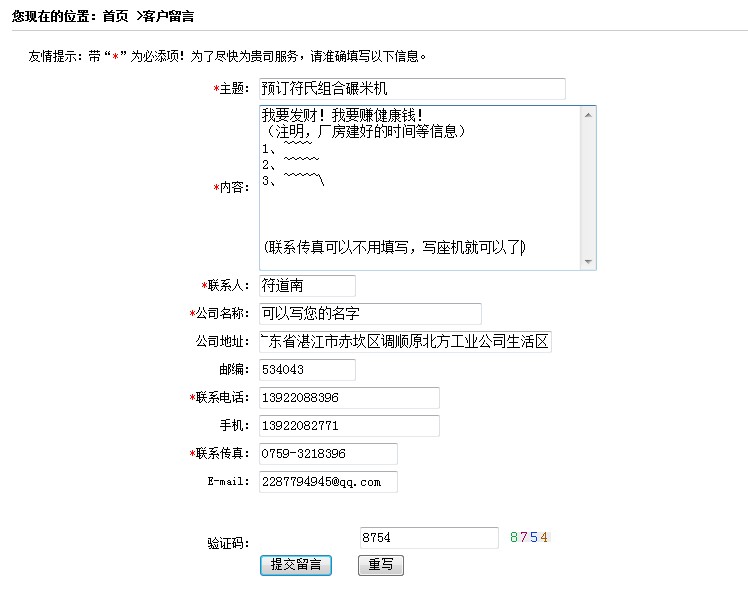 2.按信息要求,填写真实信息资料(例子如下)。确认无误,即可提交信息。